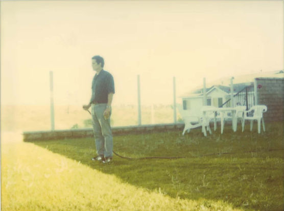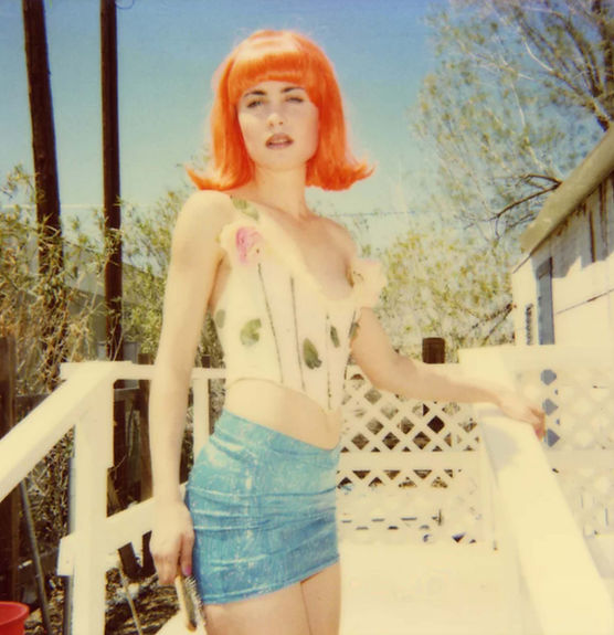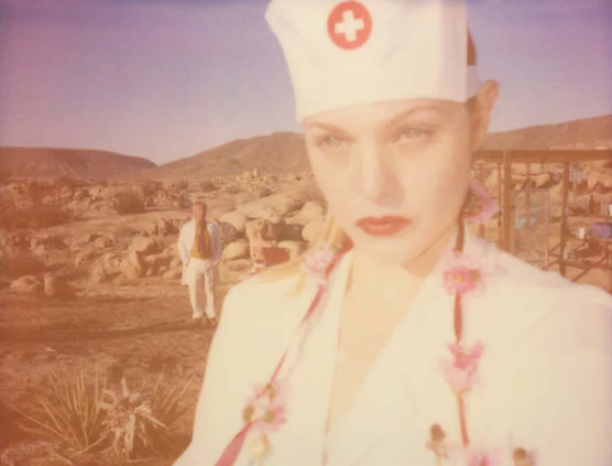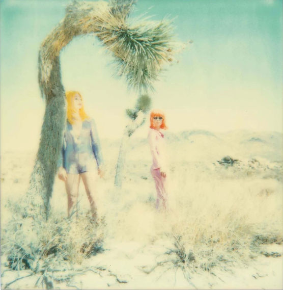The photography contains a setting of the American West with vintage overtones containing actors dressed in attire, dated hair styles, and using props from the 1960’s. Usually set out in a Western desert or suburbia, the actors range in behavior such as frolicing, posing, waiting, in a state of worry, sexual, and even violence. Stefanie’s process pertains to using expired polaroid film, reshooting the polaroids in her studio, and then using the lab process and chemical emulsions to create a grainy and aged appearance to the photography.